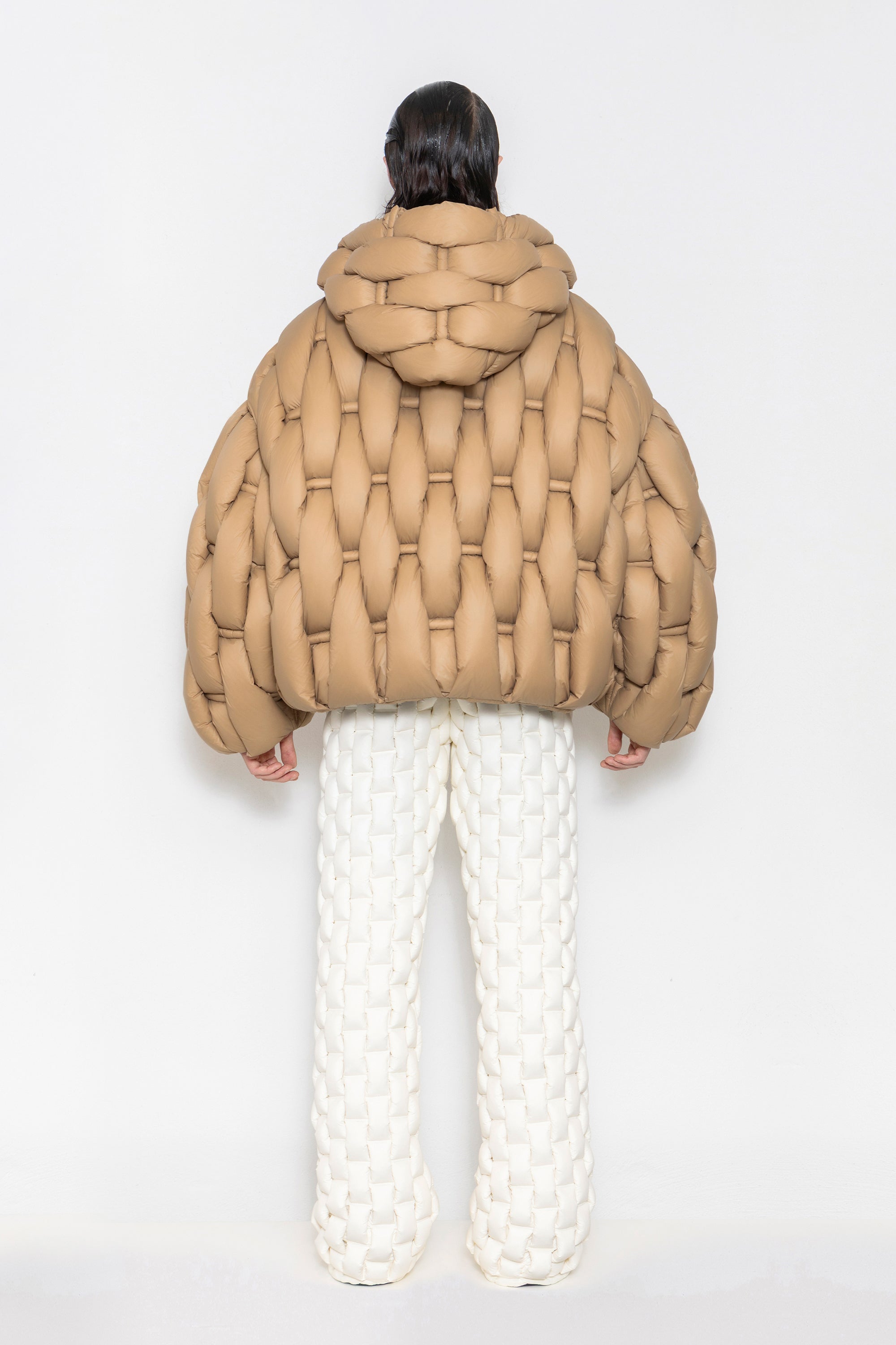 RAXXY BAMBOO WOVEN TEXTURE HOODED OVERSIZED GOOSE DOWN JACKET