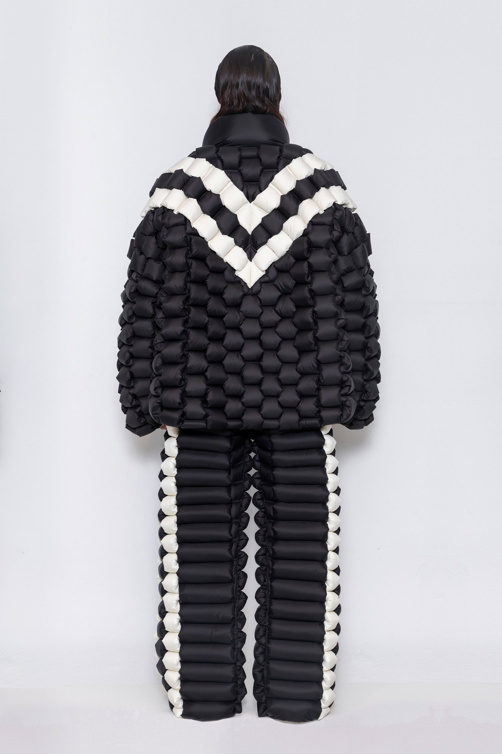 RAXXY CLASSIC BLACK & WHITE V-PATTERN GOOSE DOWN JACKET