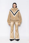 RAXXY CLASSIC V PATTERN HOODED GOOSE DOWN JACKET