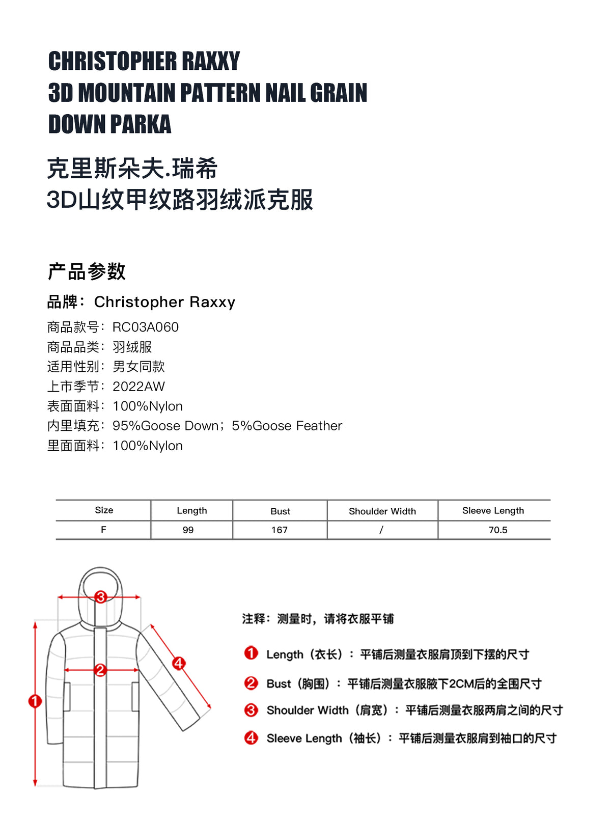 3D MOUNTAIN PATTERN NAIL GRAIN DOWN PARKA