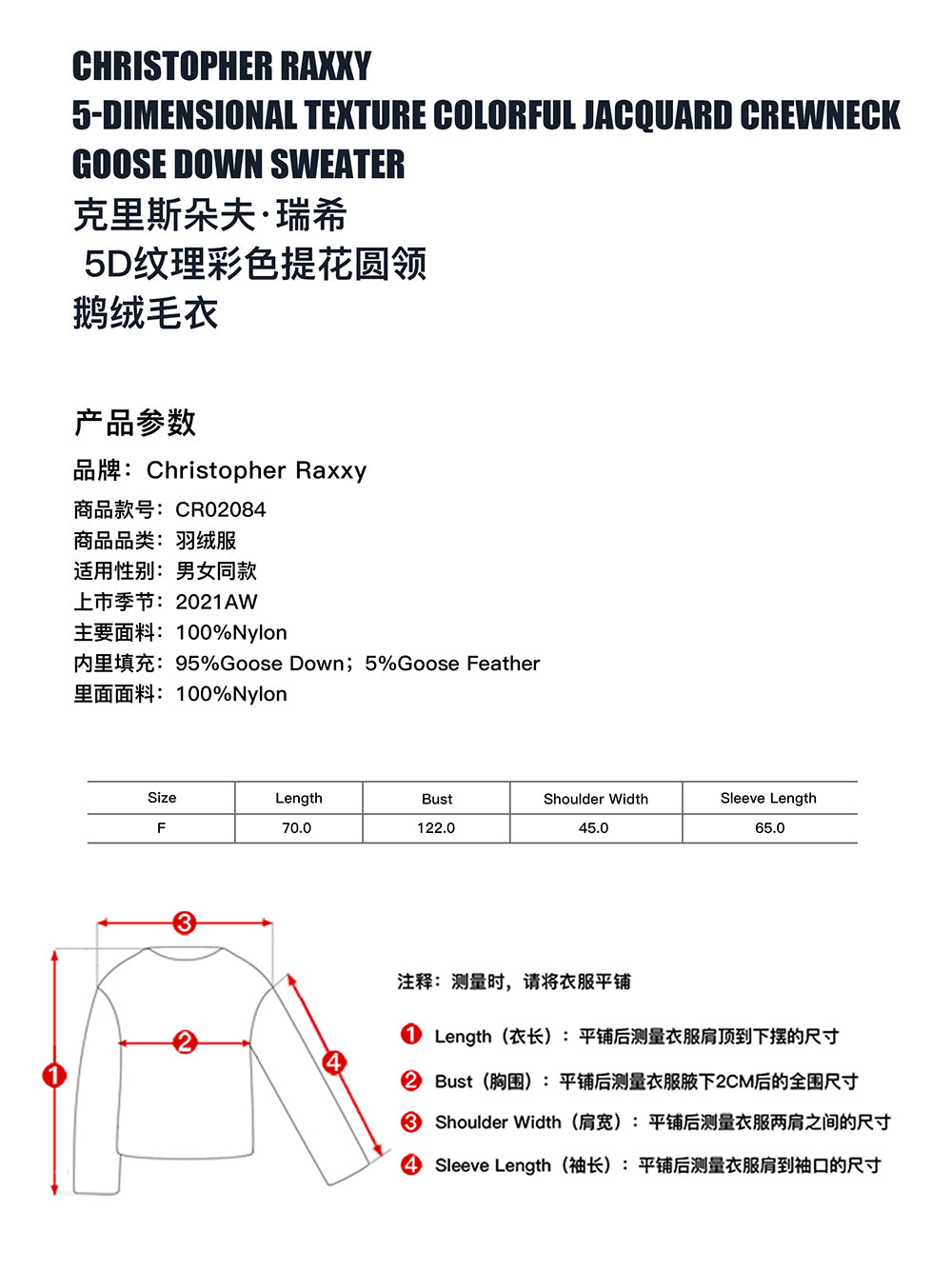 5-DIMENSIONAL TEXTURE COLORFUL JACQUARD CREWNECK GOOSE DOWN SWEATER