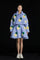 5-DIMENSIONAL TEXTURED BLUE WOVEN FLORAL GOOSE DOWN LAPEL JACKET