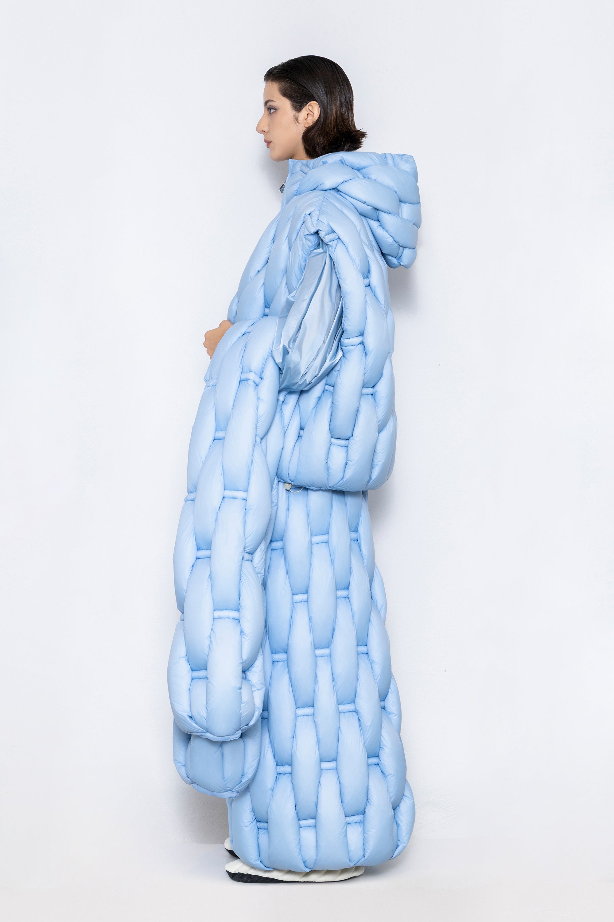 RAXXY BAMBOO WOVEN TEXTURE HOODED GOOSE DOWN VEST