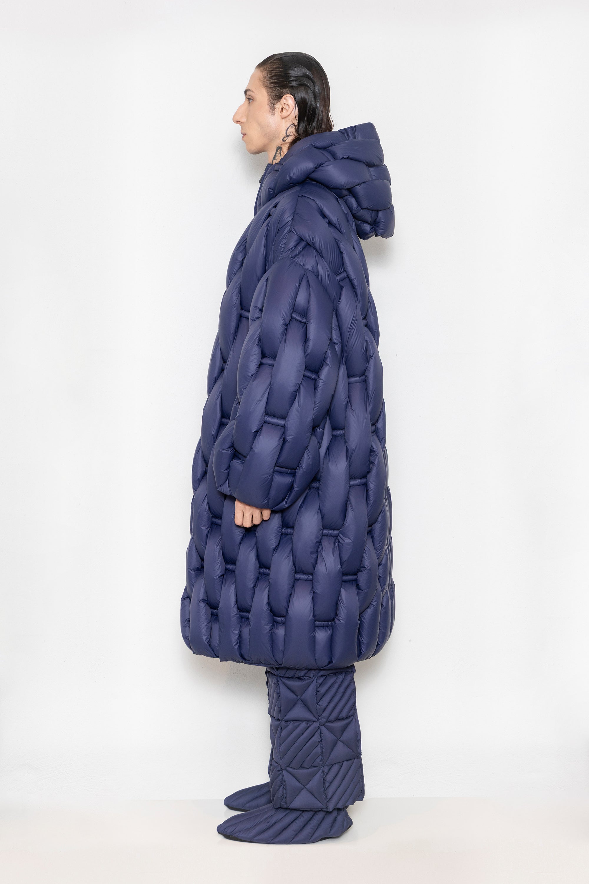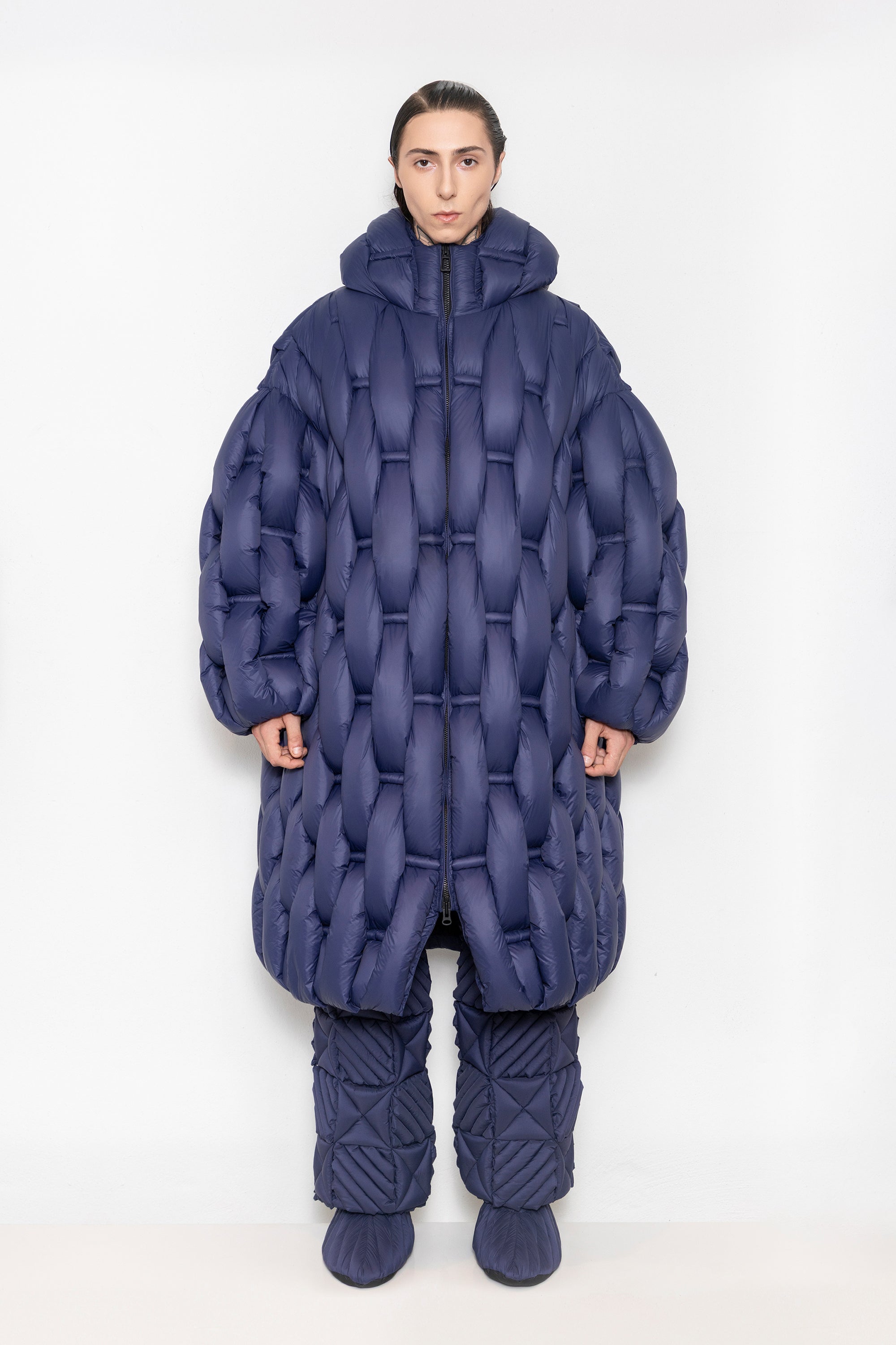 RAXXY BAMBOO WOVEN TEXTURE LONG LENGTH HOODED OVERSIZED GOOSE DOWN COAT