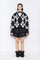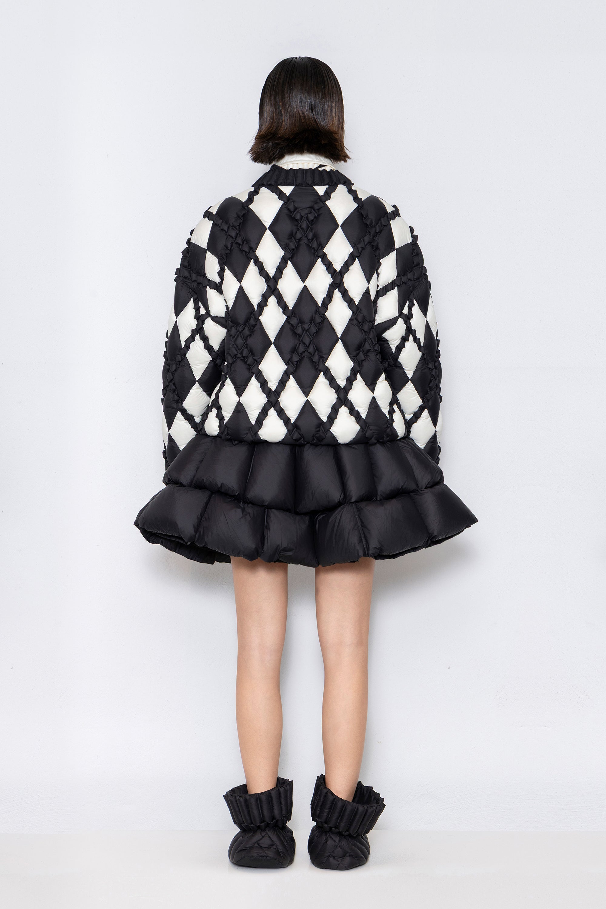 RAXXY BLACK AND WHITE QUILTED CHECK PATTERN V-NECK GOOSE DOWN CARDIGAN
