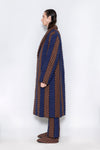 RAXXY COLOR-BLOCKED HERRINGBONE PATTERN LONG-LENGTH GOOSE DOWN COAT