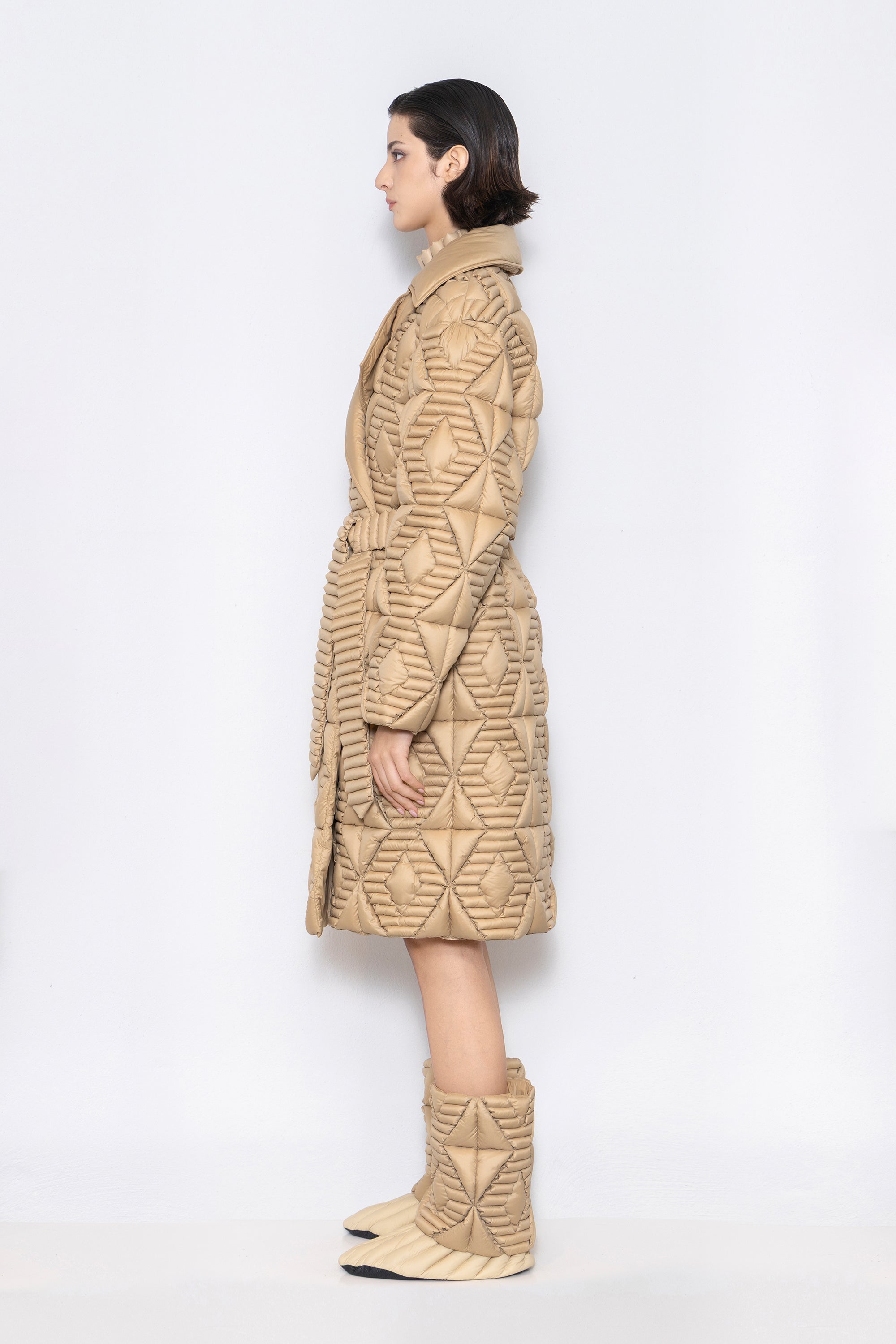 RAXXY QUILTED STRIPE LONG-LENGTH LAPEL GOOSE DOWN COAT