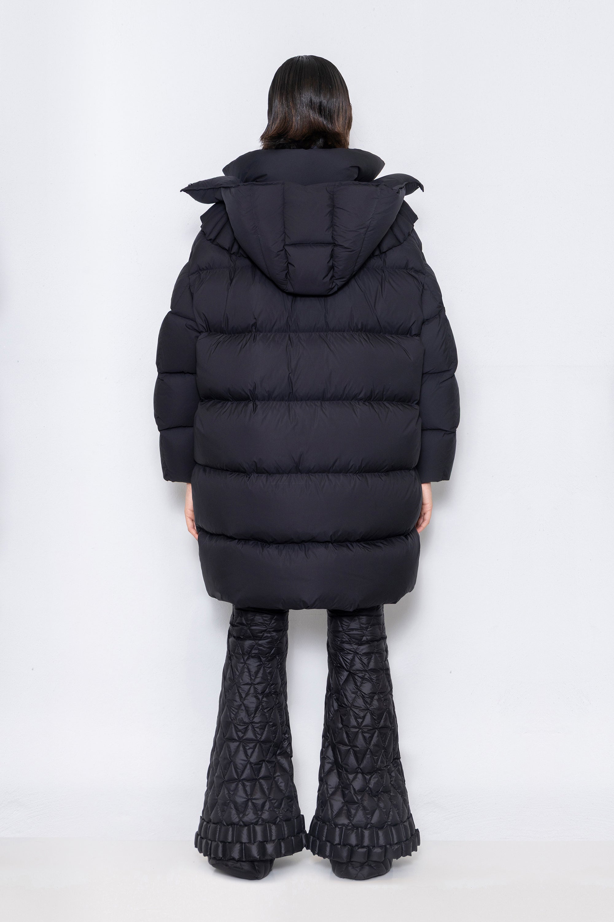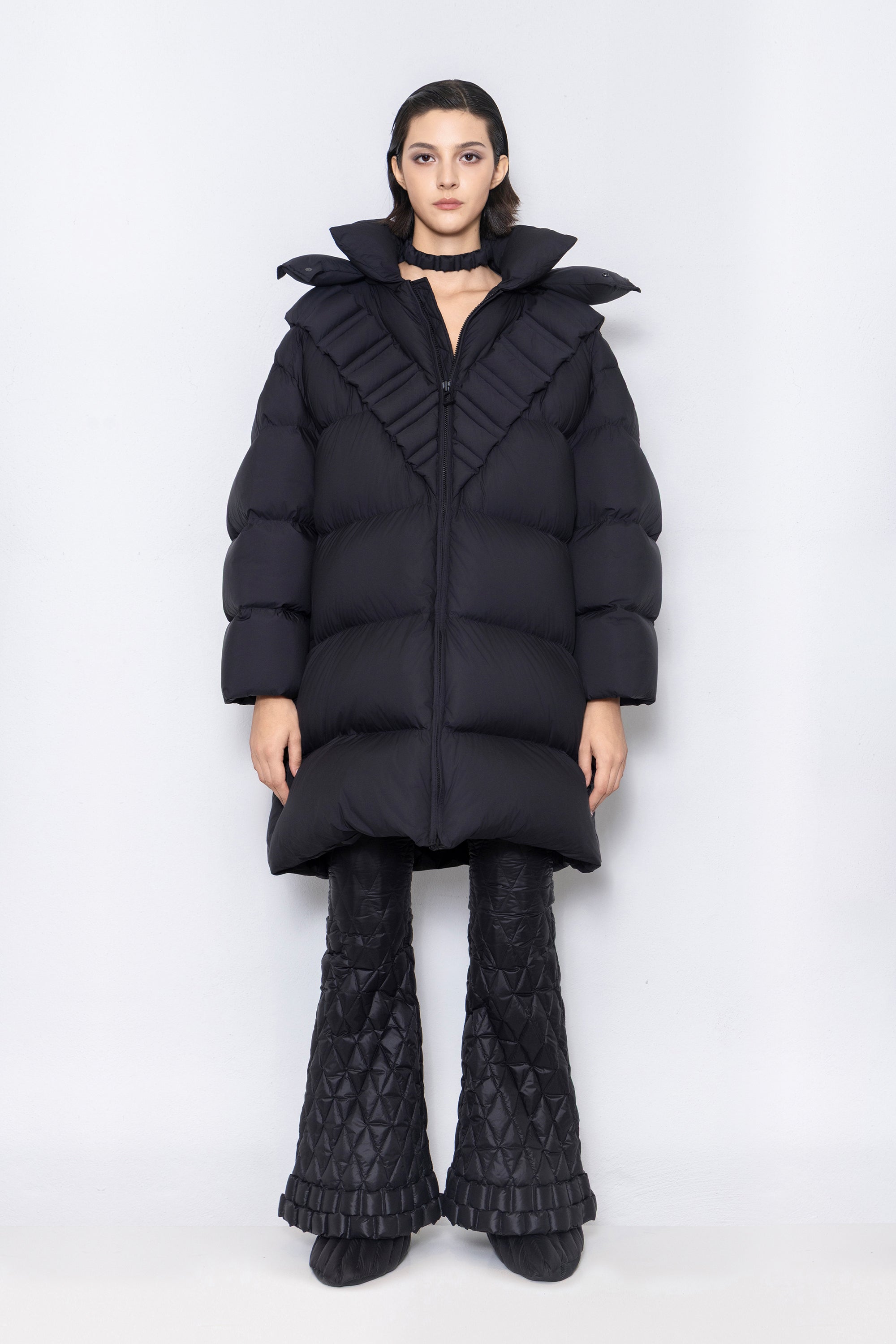 RAXXY V-PATTERN HOODED LONG-LENGTH GOOSE DOWN JACKET