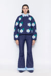 RAXXY WOVEN TEXTURE FLOWER PATTERN DOWN SWEATSHIRT